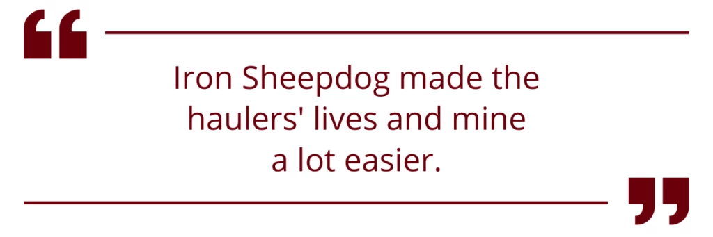 “Managing the trucks was night and day from what it used to be,” Robic adds. “Iron Sheepdog made the haulers’ lives and mine a lot easier.”